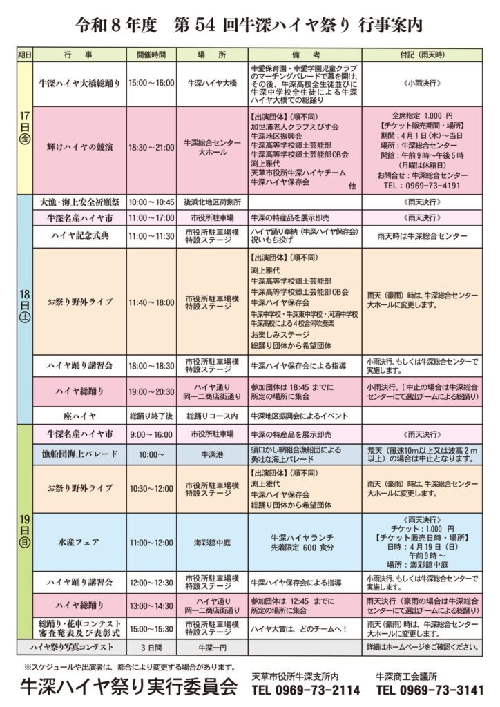 第54回牛深ハイヤ祭り」が令和8年4月17日(金)~19日(日)の日程で開催されます。